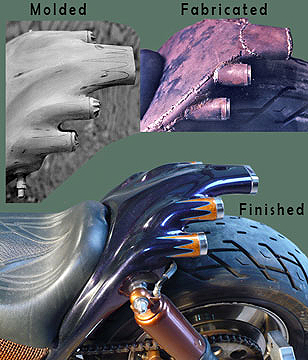 In The Weeds Customs can do it all for you. We are a one stop shop at the highest level . Part striping: The secret to great work is superior preparation. Part striping, new tanks, rust removal and removal of welding slag is accomplished with our sand blasting cabinet. Any good finish starts with proper substrate preparation. No job ends up right if it isn't built on a foundation of quality work Epoxy primer: None of our body work is ever done on the steel. We always epoxy prime the substrate first. This ensures a life-time bond and prevents any issues with fuel lifting of the paintwork. No body shop does this level of work like we do. Skim coats are applied over all body work to completely eliminate any surface definition problems once show polished. Tank seal: Fuel tanks are fully inspected. nothing could be more important to your carburetor or fuel injection system. We use the best in durable sealing methods. The POR-15 fuel tank sealer system begins with a full rust removal system, stopping any rust dead in it's tracks permanently. The extremely durable sealer will never flake or lift like the old cream coat systems or radiator repair shop goop. Once done it will never need to be done again. Powder coating; We can powder coat your parts from the frame to the engine using the latest in powder-coat technology. Re-finishing wrinkle black in powder-coat will ensure it never comes off. Flat and high gloss powder-coat finishes create that custom look and durability when we build or restore motorcycles, all exactly to your specifications.